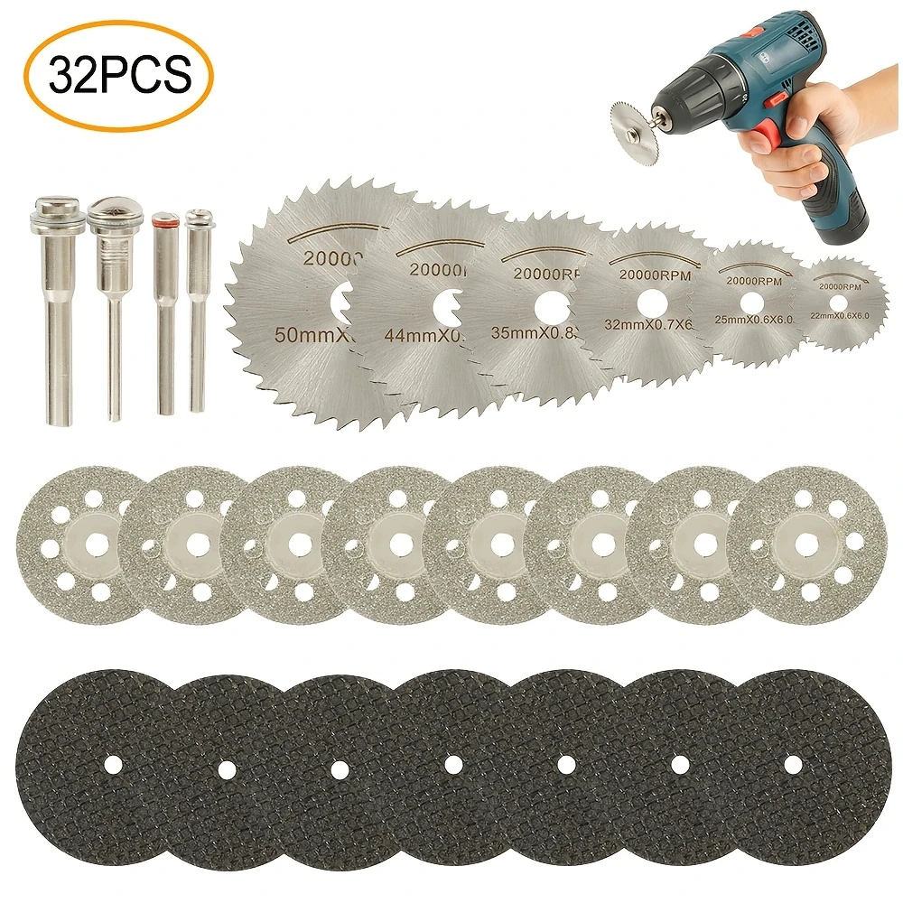 🔥🔥🔥Diamond Metal Saw Blades 32pcs Mini HSS Diamond Metal Saw Blades - Circular Saw Blade Resin Woodworking Discs for Rotary Tools