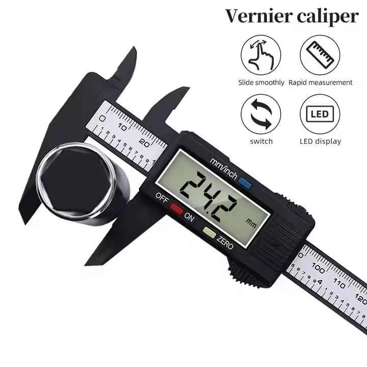 digital caliper electronic micrometer measuring tool with lcd display carbon fiber plastic vernier caliper battery operated precision measurement instrument for furniture hardware parts up to 150mm measurement range rv details 1