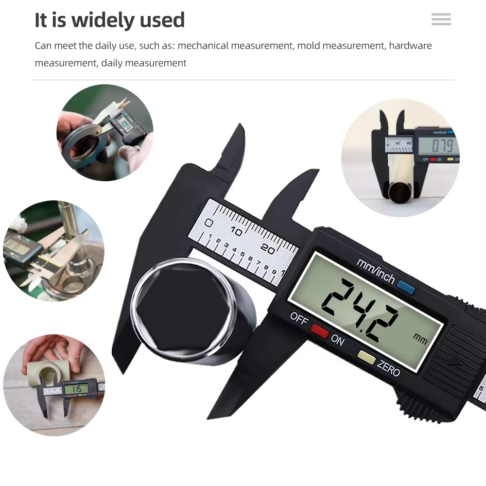 digital caliper electronic micrometer measuring tool with lcd display carbon fiber plastic vernier caliper battery operated precision measurement instrument for furniture hardware parts up to 150mm measurement range rv details 2
