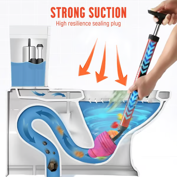 High Pressure Unblocker: The toilet unblocker features a high-pressure gun-style design that compresses air to provide a powerful stream of air that quickly and effectively clears clogs in the toilet pipes, restoring normal drainage function.